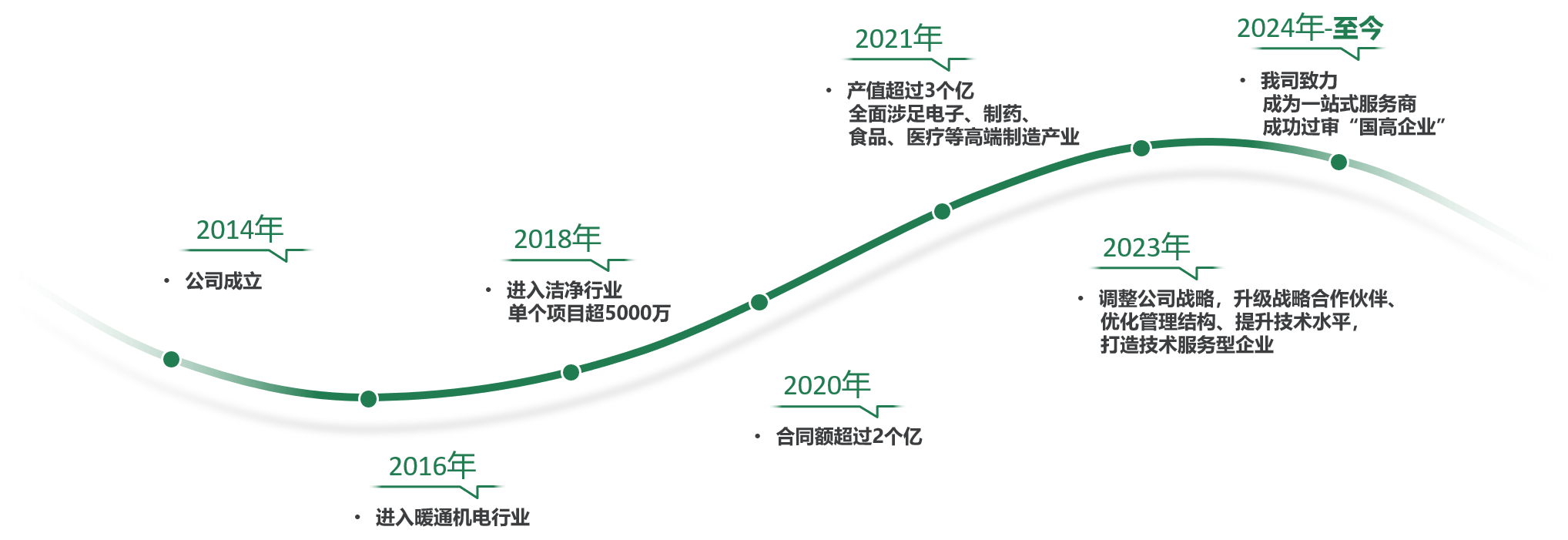 等。涉及专业包括洁净系统、暖通空调、水电、消防、智能化、电力、环保等。公司致力于成为国内机电集